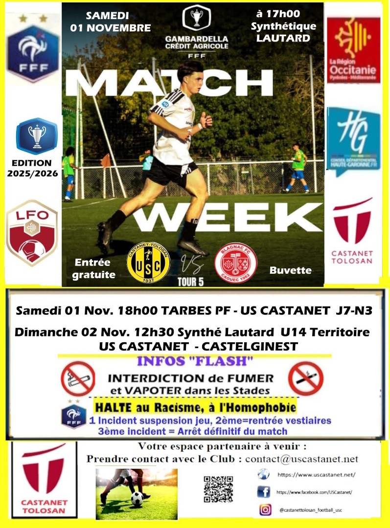 Les jeunes de l'US Castanet joueront pour le compte de la coupe Gambardella le samedi 02 novembre à 17h