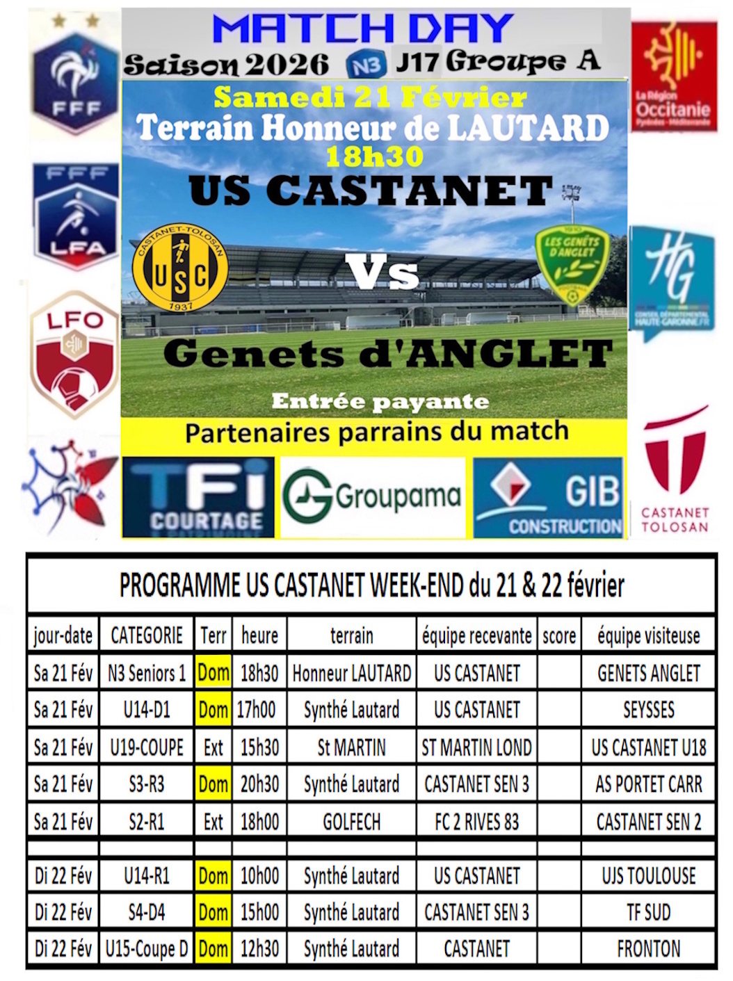 Programme du week-end 21 et 22 février 2026
